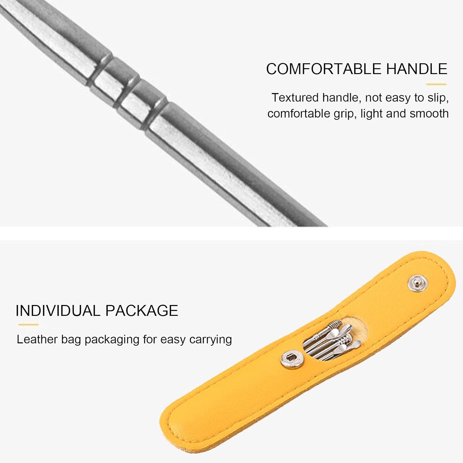 - Easy to store and carry: 6 pieces ear wax removal tools are uniformly stored in a small leather bag, so you can take them at home, business trips and travelling without taking up too much space.